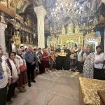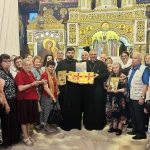 Părintele paroh Andrei-Gabriel Gherasă, consilier eparhial, a călătorit împreună cu o delegație de enoriași din parohie și cu fiii săi duhovnicești din Iași, pentru a primi acest veșmânt sfânt.