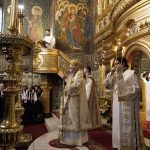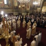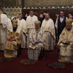 Înainte de oficierea Sfintei Liturghii, ierarhii prezenţi la sărbătoarea de la Galaţi s-au închinat la moaştele Sfântului Apostol Andrei şi ale Sfântului Cuvios Paisie de la Neamţ, aşezate spre venerare pe baldachinul special amenajat în apropierea Catedralei Arhiepiscopale.