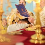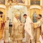 Ierarhul, întâmpinat de numeroși enoriași ai bisericii, a săvârșit Sfânta și Dumnezeiasca Liturghie înconjurat de un sobor de preoți și diaconi, printre care și Părintele Vorfolomei Mereacre, care a fost hirotonit preot paroh pe seama acestei parohii.